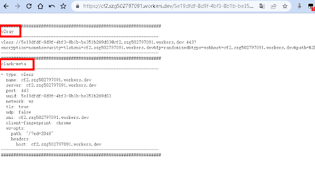 如noisevless.workers.dev/c55-08e2-46fa-9d21-2e6020d9acd9,得到配置信息