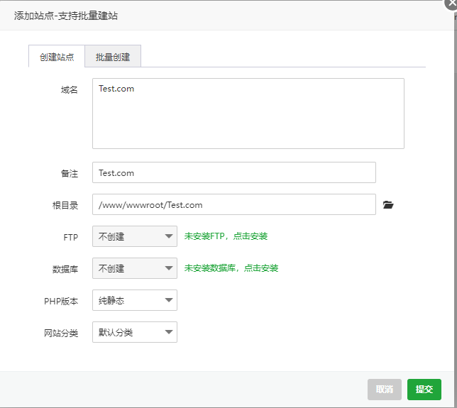 进入面板后,点击一键安装 LNMP。就能直接将 Nginx,MySQL 等网站所需内容一键安装好。